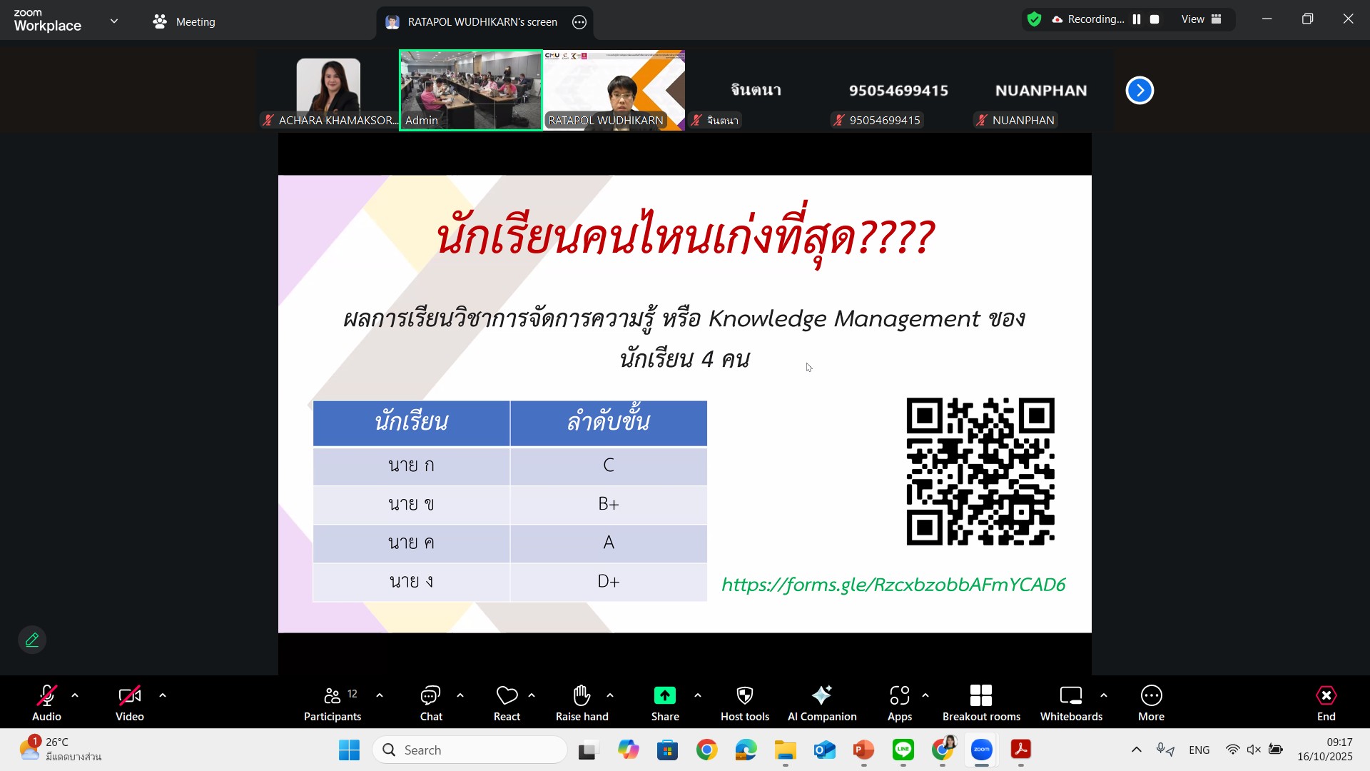 วิทยาลัยศิลปะ สื่อ และเทคโนโลยี มหาวิทยาลัยเชียงใหม่ นำโดย ผศ.ดร.อัจฉรา คำอักษร ผู้ปฏิบัติหน้าที่ช่วยคณบดี ด้านการพัฒนาองค์ความรู้และการจัดการนวัตกรรม พร้อมด้วย ผศ. ดร.อัครพล นิมมลรัตน์ ประธานคณะกรรมการบริหารหลักสูตรบัณฑิตศึกษา ประจำสาขาวิชาการจัดการความรู้และนวัตกรรม (ปริญญาโท) และ ผศ.ดร.เฉลิมพล คงจิตต์ ผู้ช่วยศาสตราจารย์หลักสูตรระดับบัณฑิตศึกษา สาขาวิชาการจัดการความรู้และนวัตกรรม และ อ.ดร. วันทนา อารีประยูรกิจ พร้อมด้วยทีมงาน ให้การต้อนรับคณะศึกษาดูงานด้านการจัดการความรู้ (Knowledge Management: KM) จากสถาบันวิจัยวิทยาศาสตร์สุขภาพ นำโดย คุณอริยา สิงหประเสริฐ เลขานุการสถาบันวิจัยวิทยาศาสตร์สุขภาพ พร้อมด้วยคณะกรรมการ KM และบุคลากรสนใจเข้าร่วมกิจกรรม จำนวน 16 ท่าน ในวันศุกร์ที่ 30 สิงหาคม 2567 เวลา 13.30-16.30 น. ณ ศูนย์การพัฒนาองค์ความรู้และนวัตกรรม (Knowledge and Innovation Development: KIND)